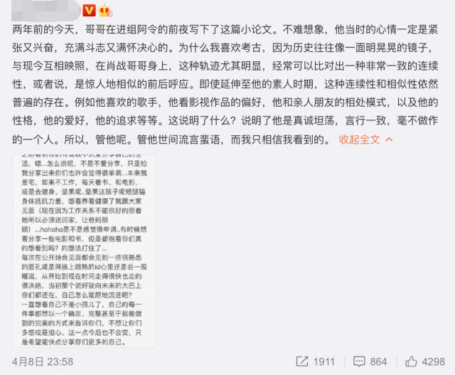 Mới đây, một người hâm mộ có sức ảnh hưởng lớn trong fandom Tiêu Chiến tiết lộ một bài luận văn nhỏ được thần tượng viết vào hai năm trước. Bài viết bày tỏ tâm tình vừa căng thẳng lại hưng phấn, tràn đầy ý chí chiến đấu và lòng quyết tâm của Tiêu Chiến vào thời điểm đó. Theo như những gì được tiết lộ, bài luận này được viết trước đêm Tiêu Chiên gia nhập vào đoàn phim Trần tình lệnh.