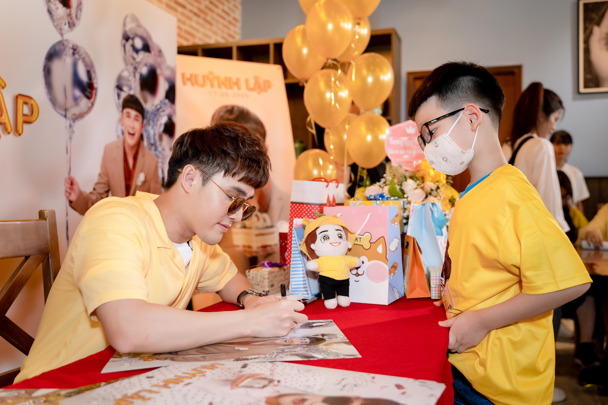 Trong buổi ký tặng, Huỳnh Lập đề nghị quản lý Hồng Tú, các nhân viên và fan chuẩn bị mọi thứ đơn giản nhất. Mọi người không cần mua bánh kem to mà anh chỉ cần chiếc bánh kem “bé tẹo như cái chén ăn cơm” là đủ. Nam diễn viên cũng dặn các fan không chuẩn bị quà cáp gì cả bởi tình hình dịch bệnh ai cũng khó khăn nên dành cho nhau lời chúc tinh thần đã là hạnh phúc rồi!