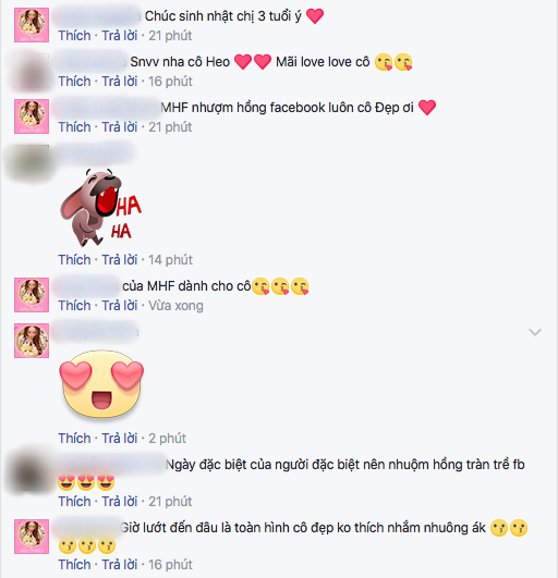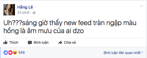 Minh Hằng bất ngờ trước hành động “nhuộm” hồng Facebook từ phía người hâm mộ.