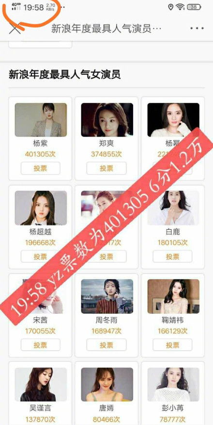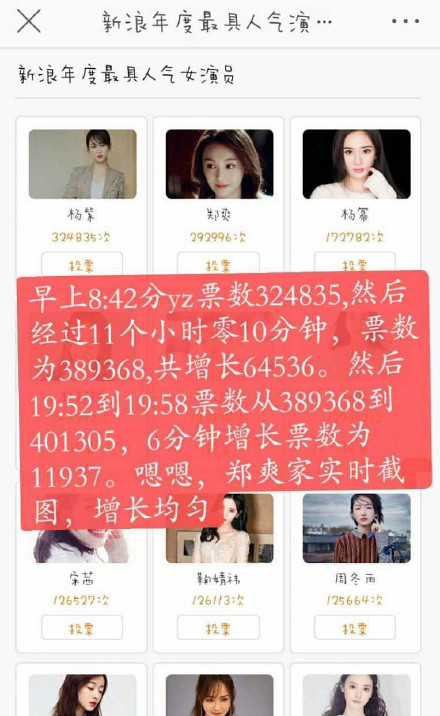 Mới đây, fan hai nhà Dương Tử và Trịnh Sảng đã chỉ trích lẫn nhau vì cuộc đua bỏ phiếu cho nữ diễn viên có nhân khí cao nhất. Đầu tiên là fan Dương Tử ám chỉ số phiếu của Trịnh Sảng tăng một cách dị thường. Sau đó, phía fan nhà Trịnh Sảng vạch trần số phiếu của Dương Tử trong vòng 6 phút đã thăng lên 12 ngàn phiếu.