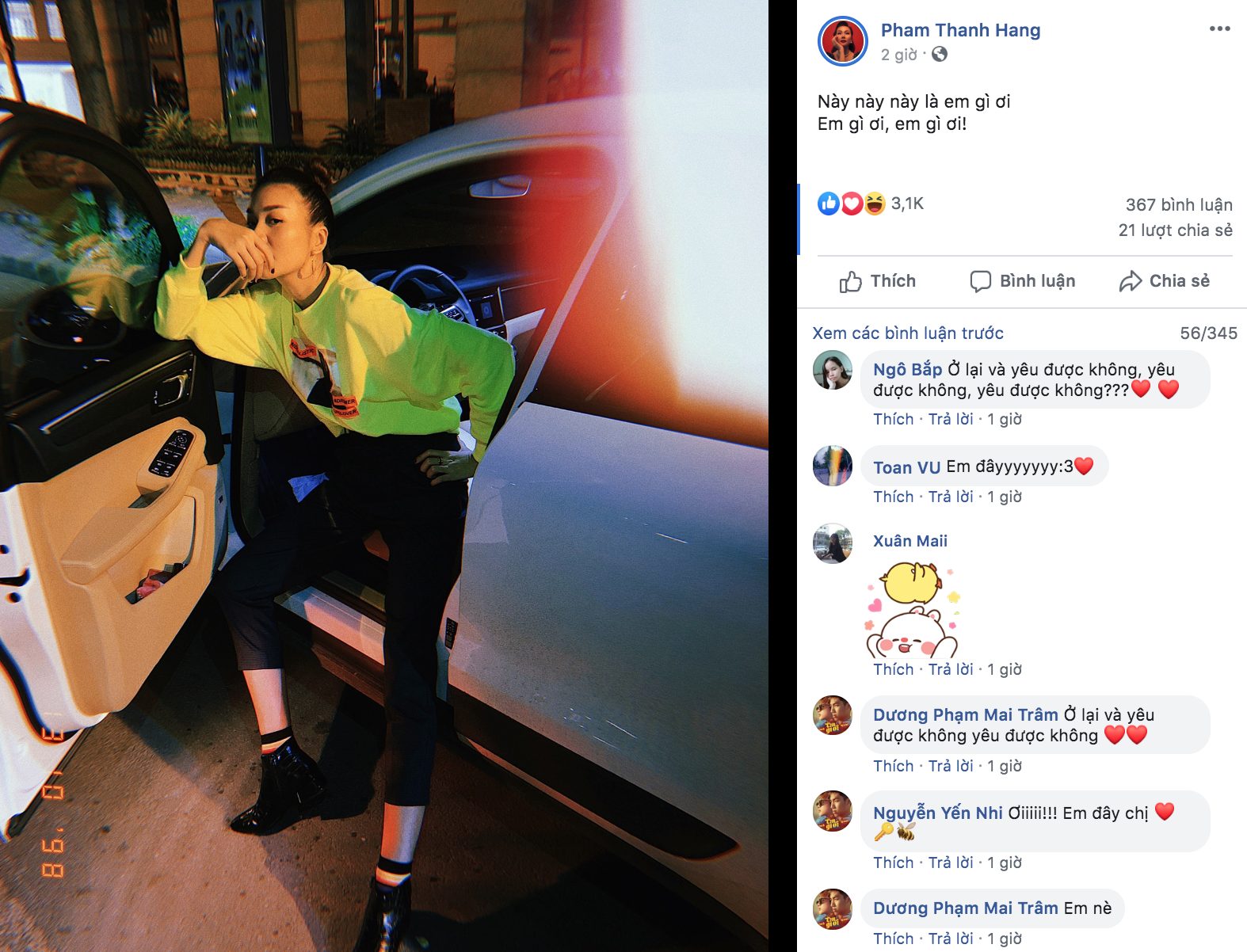 Dù chưa bao giờ chia sẻ về Jack & K-ICM nhưng có vẻ như siêu mẫu Thanh Hằng cũng có theo dõi hoạt động của 2 chàng trai khi cách đây vài giờ, cô đã mượn lời bài hát trong ca khúc mới của bộ đôi để làm “caption” cho ảnh mới. Trong ảnh, nữ HLV The Face 2018 diện trang phục cá tính, tạo dáng “chất lừ” bên “xế hộp”. Câu hát điệp khúc: “Này này này là em gì ơi. Em gì ơi, em gì ơi!” được Thanh Hằng sử dụng làm chú thích cho bài viết.