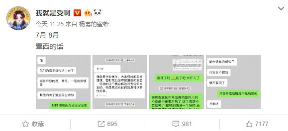 Ngay lúc “nước sôi lửa bỏng”, trên một diễn đàn, fan lớn của Dương Mịch (trưởng trạm fandom) công khai chỉ trích công ty truyền thông Gia Hành. Đồng thời, người này đăng tải đoạn đối thoại với nhân viên của Dương Mịch.
