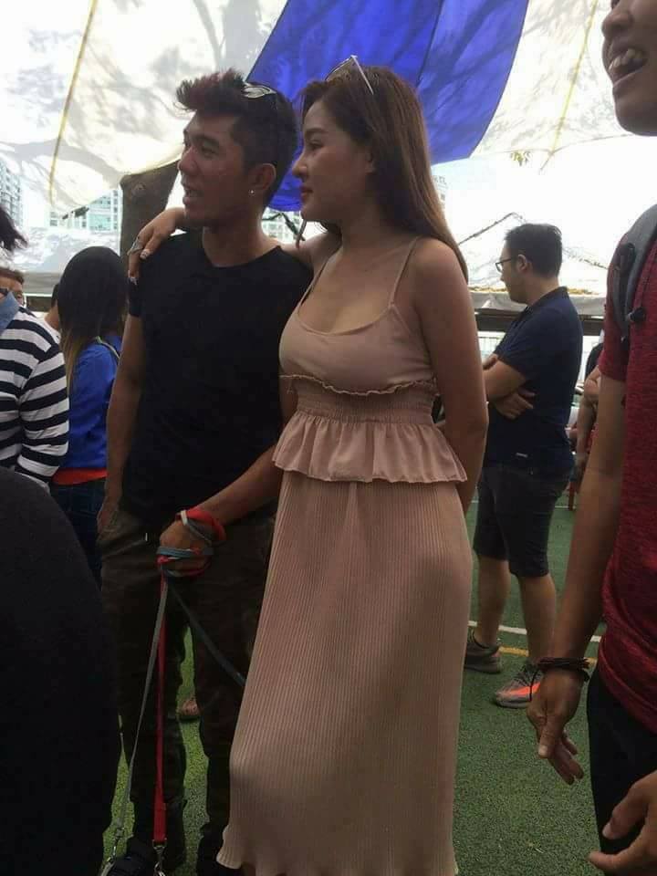 Cả hai vô tư thể hiện tình cảm với nhau tại nơi đông người.