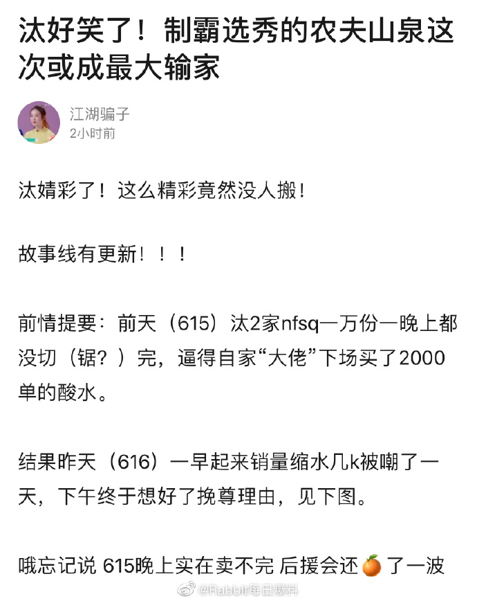 Hôm qua, lượng tiêu thụ của một thương hiệu đồ uống do Ngu Thư Hân làm đại diện bị phát hiện có điều bất thường. Thời gian càng trôi qua, số lượng sản phẩm được mua lại càng giảm. Sau đó, fan hâm mộ cô nàng lên tiếng giải thích là vì họ mua quá nhiều nên bị hệ thống hủy đơn.