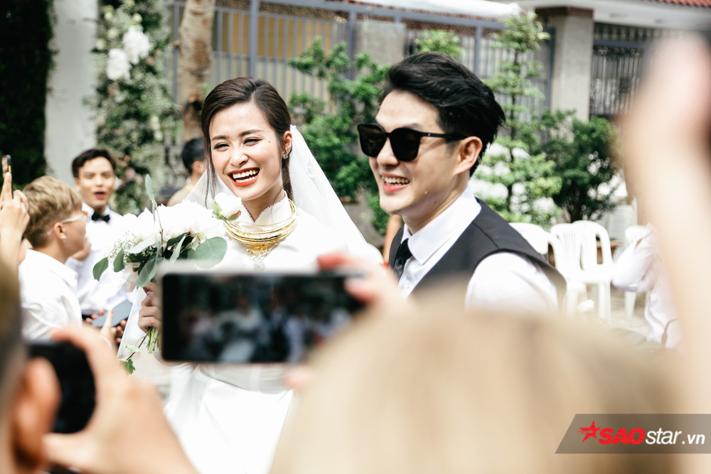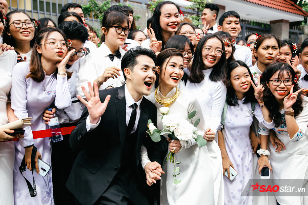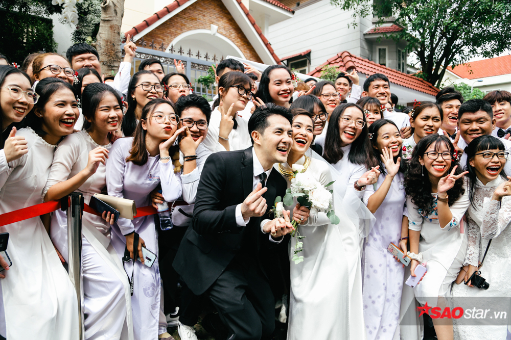 Đặc biệt, xuất hiện tại lễ cưới, cả fanclub của Ông Cao Thắng - Đông Nhi đều diện chung 1 concept đồng phục học sinh. Nam áo sơ mi đóng thùng, nữ duyên dáng trong tà áo dài thước tha. Bật mí về chi tiết này, đại diện fanclub cho biết: “Ngày hôm nay, có mặt tại lễ cưới của 2 anh chị, chúng em muốn mang đến 1 màu trắng tinh khiết tượng trưng cho tình yêu của họ”.