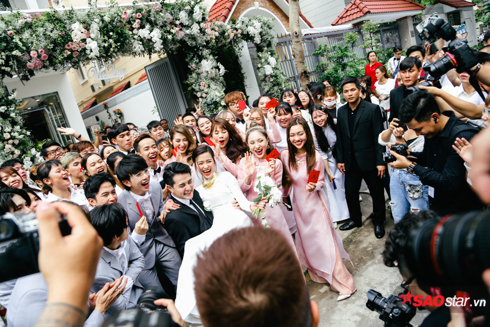 Đông đảo người hâm mộ của đã có mặt từ rất sớm tại nhà Đông Nhi ở Bình Chánh, chờ đợi khoảnh khắc Ông Cao Thắng đến đưa nàng về dinh. Sau khi cặp đôi bước lên xe hoa, đoàn fan tổ chức di chuyển, tháp tùng cô dâu về đến tận nhà chú rể tại quận 7.