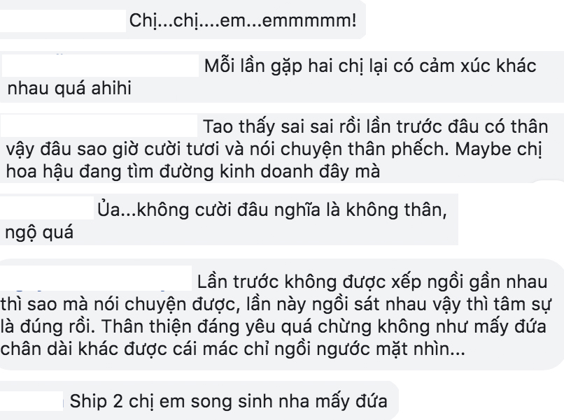 Ngắm sắc vóc mặn mà của cả hai người đẹp khi ở cạnh, fan hâm mộ tắm tắc khen vì quá thần thái. Đặc biệt là sự thân mật của hai người đẹp, họ liên tục cười đùa và tâm sự cùng nhau. Chính điểm này, fan hâm mộ mới phát giác nhận ra thái độ của hai phía dành cho nhau đã có sự thay đổi, nhiều bình luận so sánh biểu cảm của hai người đẹp trong lần gặp trước so với lần này đã có vẻ thân thiết hơn.