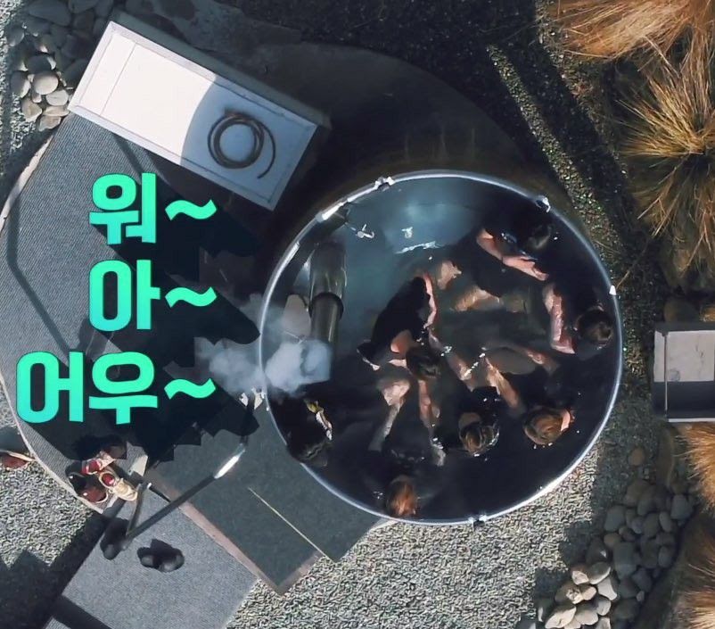 Vừa ngâm mình trong nước nóng, các chàng trai không ngừng phát ra những âm thanh đầy thỏa mãn. Bên cạnh đó, nhóm nhạc nam nhà Big Hit vẫn không quên “cà khịa” lẫn nhau với trò té nước như những đứa trẻ.