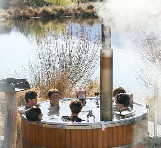 BTS thỏa mãn trong bể nước nóng.