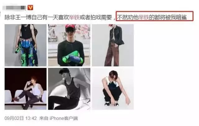 Ngoại trừ Tiêu Chiến thì một người yêu thích vận động như Vương Nhất Bác cũng trở thành đối tượng giám sát của fan. Có nhóm fan lớn lần lượt đăng bài bày tỏ: “Ngoại trừ một ngày nào đó bản thân Vương Nhất Bác thích cử tạ hoặc phim ảnh yêu cầu, nếu không người nào khuyên anh ấy cử tạ cũng sẽ bị cá mập ăn thịt”.