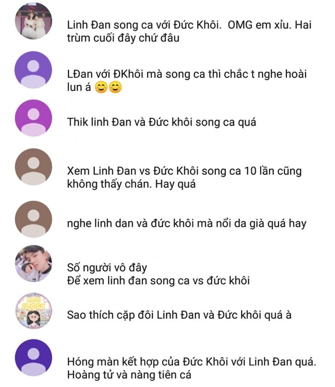 Khán giả để lại hàng loạt bình luận hứa hẹn “cày view” cho màn song ca “đỉnh” của 2 nhân tố nút chặn Linh Đan - Đức Khôi.