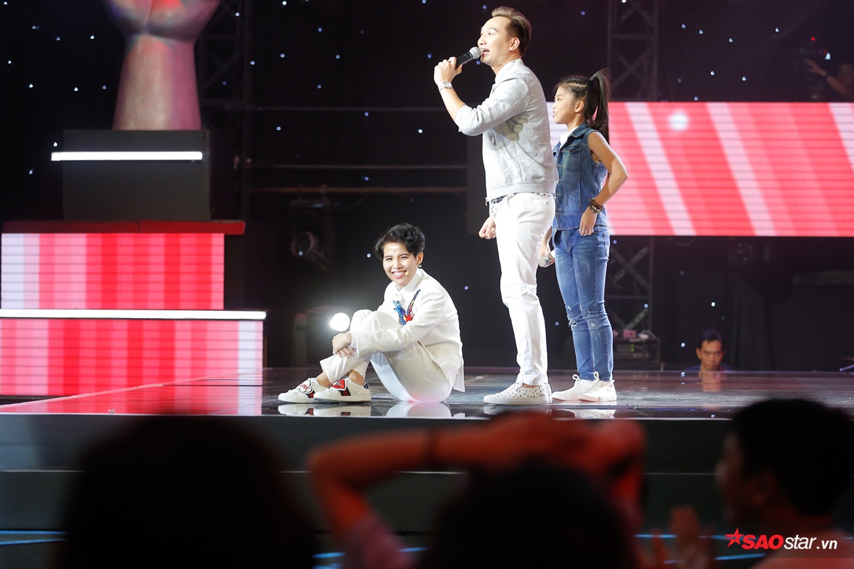 Còn làm nũng ngồi hẳn trên sân khấu đáng yêu như thế này.
