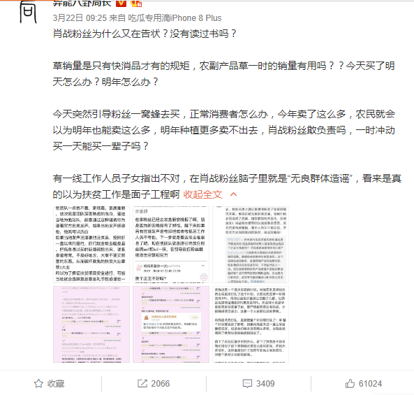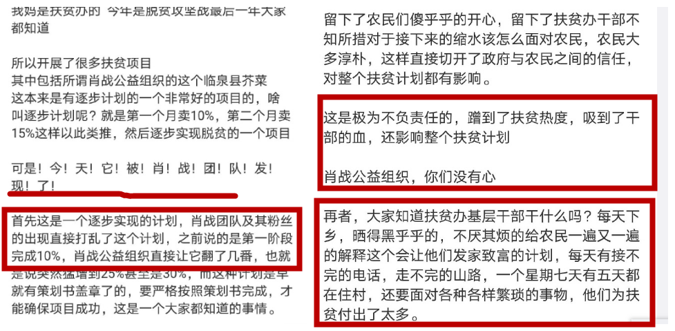 Nếu chiếu theo phương án ban đầu trước khi có sự tham gia của fan Tiêu Chiến, mọi người lập ra mục tiêu giúp đỡ nông dân theo từng mức và tăng tỷ lệ phần trăm mua hàng theo mỗi tháng: tháng sau sẽ nhiều hơn 5% so với tháng trước. Bất ngờ thay, trong phút chốc, bên phía fan Tiêu Chiến đã mua hết làm nhiều người trở tay không kịp và hạng mục này chính là Cây tề thái của huyện Lâm Tuyền.