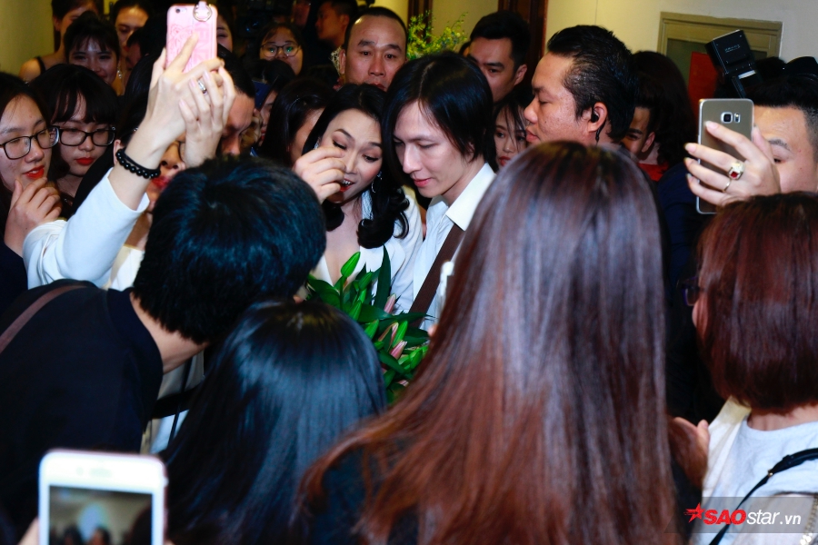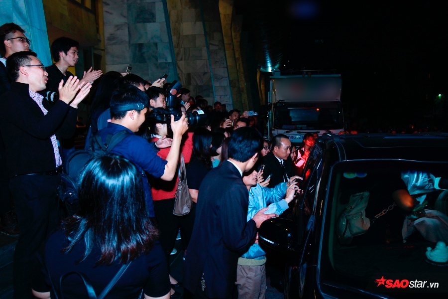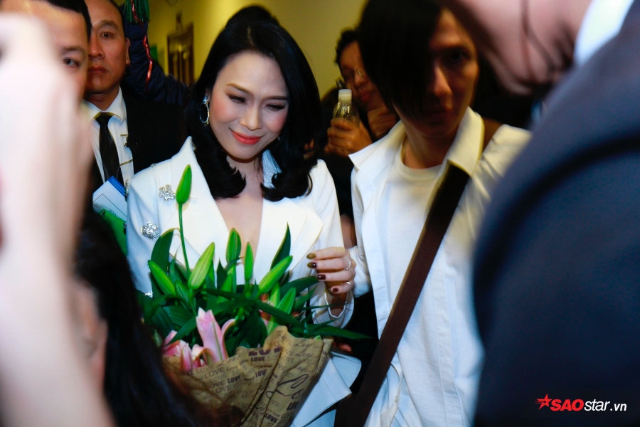 Hậu sự kiện, người hâm mộ không những tặng hoa mà còn đuổi theo Mỹ Tâm tới tận cửa xe. Các fan quây kín, hò reo ầm ĩ như cách ăn mừng thành tích âm nhạc mới nhất trong sự nghiệp giọng ca Đừng hỏi em.