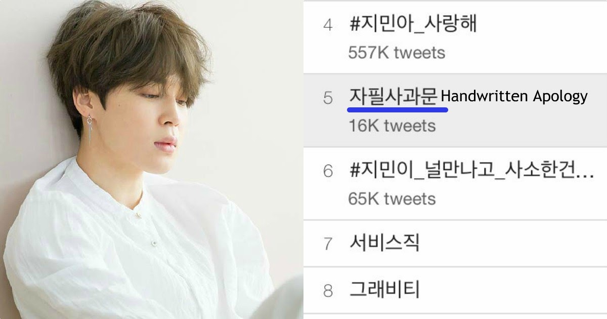 Thực sự xin lỗi Jimin (BTS) vì đã đăng một hashtag chế giễu vào ngày sinh nhật của anh. Tôi sẽ không “bước chân” lên Twitter và chắc chắn rằng không có chuyện như thế này xảy ra nữa. Tôi không có gì khác ngoài câu xin lỗi. Không còn nghi ngờ gì nữa, hashtag #HappyBirthdayGorila hoàn toàn là lỗi của tôi. Vì tôi là người bắt đầu chuyện này. Tôi sẽ cố gắng hết sức để gỡ bỏ tweet xu hướng và giúp đỡ ủng hộ trong các tweet sinh nhật của Jimin. Tôi thực sự phản ánh về sai lầm của mình và một lần nữa tôi muốn xin lỗi ARMY. Tôi cũng xin lỗi những người hâm mộ X1 khi buồn lòng về ảnh và hồ sơ Twitter của tôi. Tôi biết rằng nhiều bạn vẫn có thể tức giận khi đọc bức thư này. Một lần nữa, tôi thực sự xin lỗi vì tất cả mọi thứ. Tôi xin lỗi vì bức thư này ngắn ngủi. Cảm ơn bạn đã đọc”.