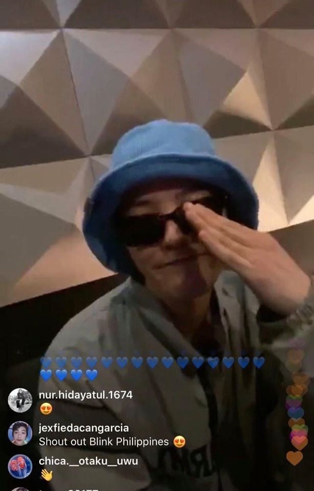 Chỉ xuất hiện trong một thời gian ngắn ngủi ở livestream nhưng người hâm mộ đã vô cùng hào hứng khi thấy G-Dragon có mặt ở phòng thu cùng với BlackPink. Khi được khuyến khích đeo thử kính râm, trưởng nhóm BigBang đã giả vờ bỏ chạy nhưng sa đó quay lại và khoe dáng với một vài chiếc kính thời trang.