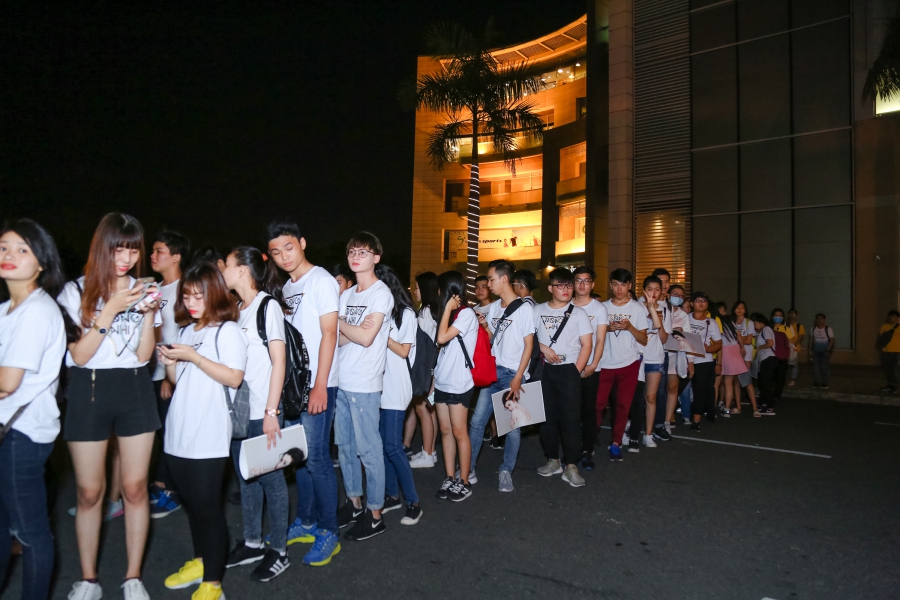 Dù 8h tối chương trình mới bắt đầu nhưng từ 4h chiều, rất đông người hâm mộ đã tập trung xếp hàng chờ đợi Đông Nhi.