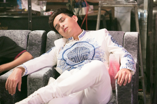 Do thức đêm chuẩn bị cho tiết mục trong chương trình The Remix 2016, Noo Phước Thịnh ngủ gục trong lúc chờ tổng duyệt.