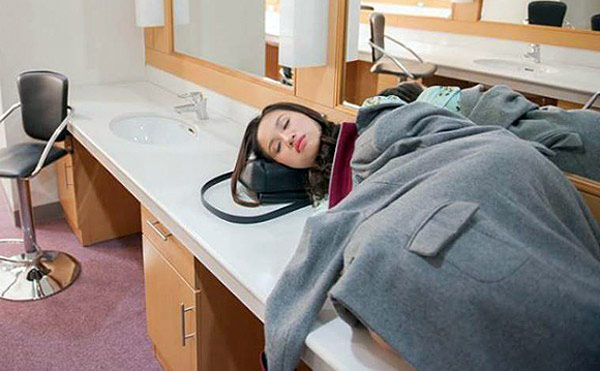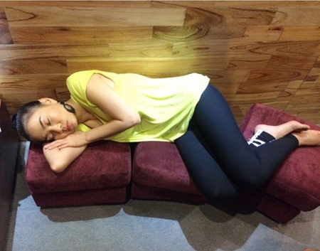 Bận rộn với lịch diễn dày đặc cùng một số công việc cá nhân, Thu Minh tranh thủ chợp mắt mọi lúc mọi nơi; đó có thể là lúc cô đang make up hoặc là thu âm ca khúc mới.