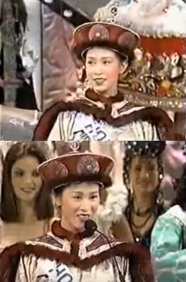 Trang phục truyền thống mà Miss International Hong Kong 1997 diện trong phần giới thiệu mang phong cách triều phục Trung Hoa. Chắc có lẽ chính Xa Thi Mạn cũng không ngờ sau 20 năm, cô lại diện bộ “quốc phục” này khi thể hiện vai diễn Kế hoàng hậu trong tác phẩm truyền hình Diên Hy công lược.