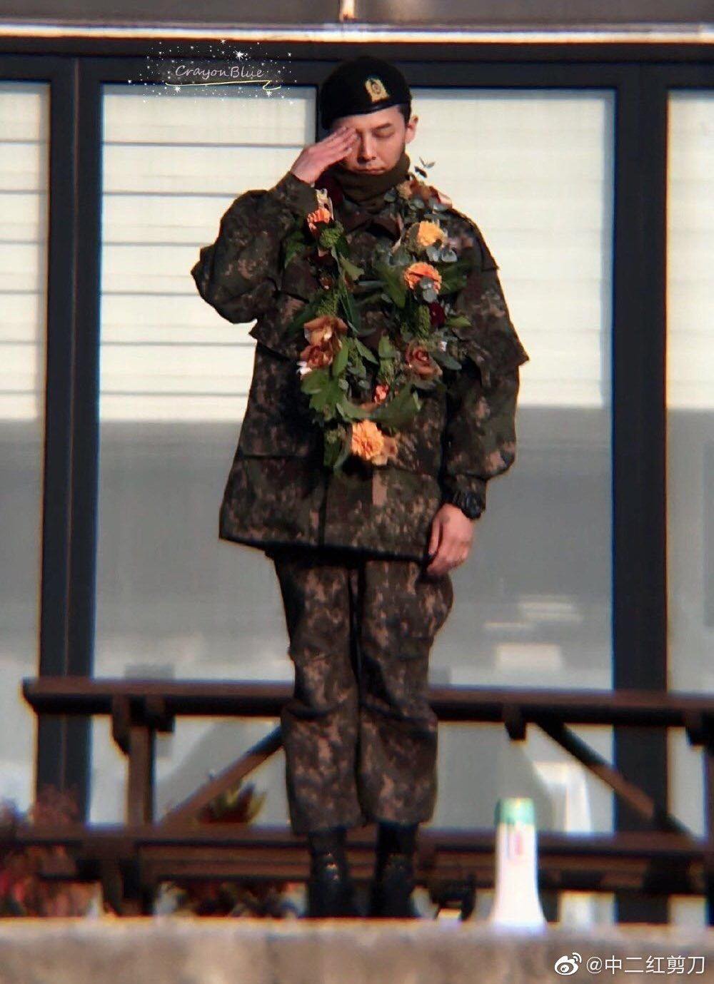Đúng giờ G, G-Dragon xuất hiện trong bộ trang phục quân đội, cúi chào người hâm mộ đã có mặt để chờ đón, ủng hộ mình. Nam ca sĩ phát biểu ngắn gọn trước các fan và truyền thông:“Tôi đã trở về sau khi kết thúc thành công nghĩa vụ quân sự bắt buộc và tôi muốn cảm ơn tất cả các bạn đã chờ đợi tôi. Tôi cũng cảm ơn các bạn vì đã đến hôm nay. Hiện tại, tôi không còn là một người lính, tôi sẽ trở lại với nghề ca sĩ và nỗ lực hết mình”.