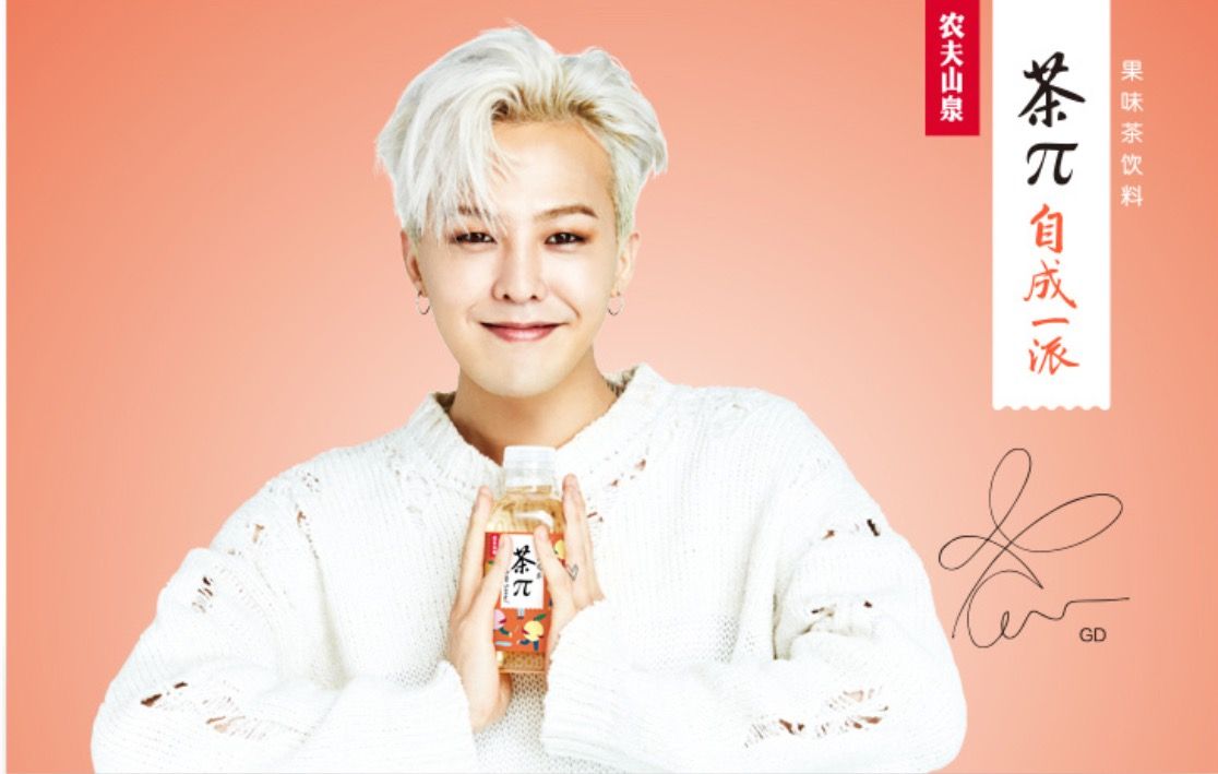 G-Dragon đã trở thành người mẫu CF cho thương hiệu đồ uống nổi tiếng Trung Quốc Nongfu Springs.