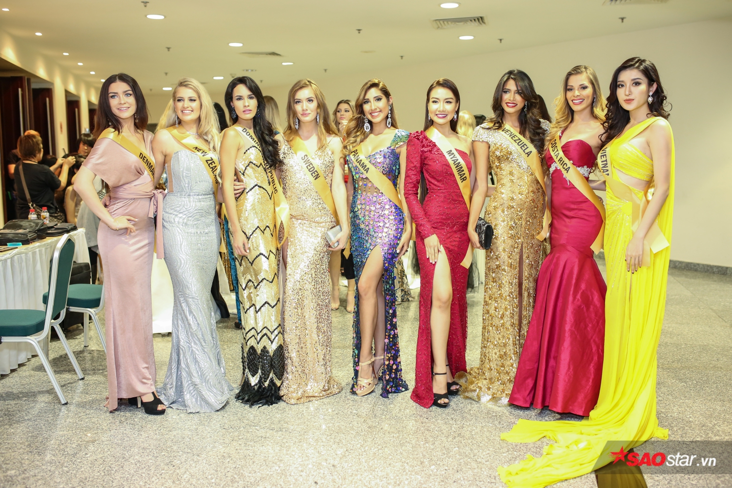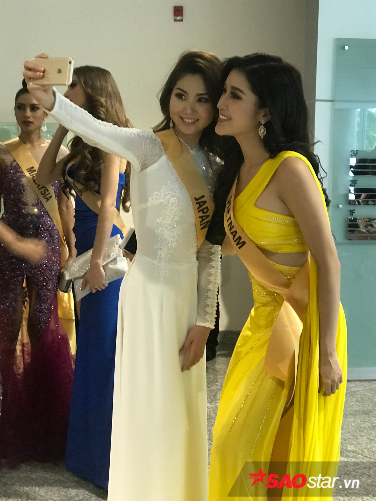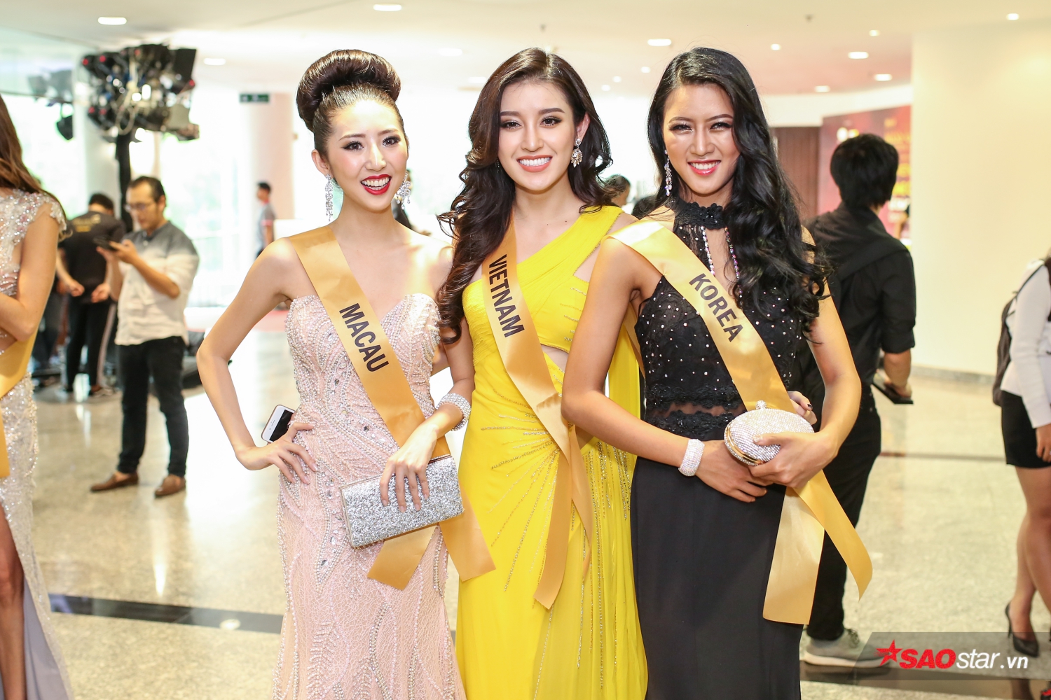 Người đẹp “khoe” thần thái rạng rỡ khi chụp ảnh bên Miss Macau và Miss Korea.