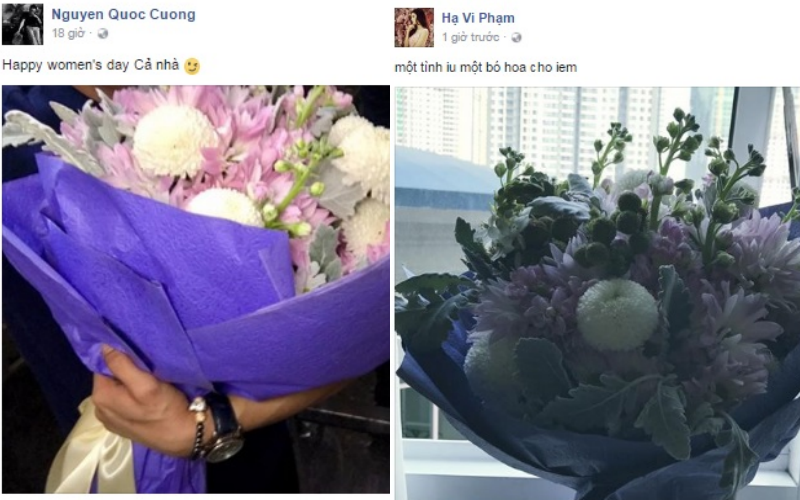 Cả Cường Đô La lẫn Hạ Vi cùng chia sẻ một bó hoa trên trang Facebook cá nhân vào dịp 8/3/2017.