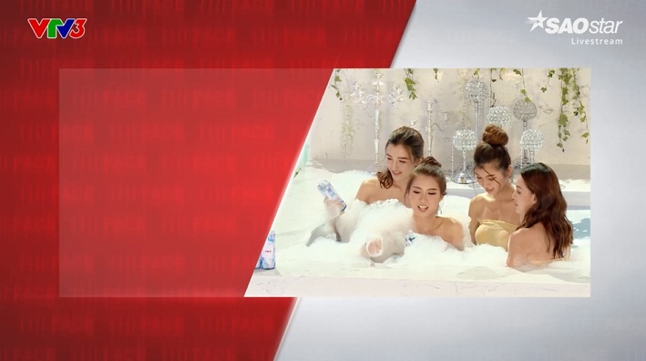 Các thí sinh cùng thực hiện thử thách tạo dáng trong bồn tắm.