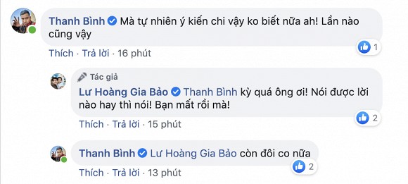 Chưa kể, một số khán giả tinh ý còn phát hiện ra trong một cuộc hội thoại với đồng nghiệp ở sân khấu kịch, người kia viết: “Hay như vậy lắm anh ơi, từ hồi còn diễn sân khấu cũng hay vô duyên”. Trả lời Gia Bảo viết: “Hai nàng Mị Châu mà sao ưa nhau được”.