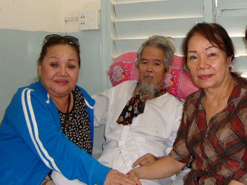NSND Ngọc Giàu đến thăm đạo diễn/NSND Huỳnh Nga và vợ tại bệnh viện.