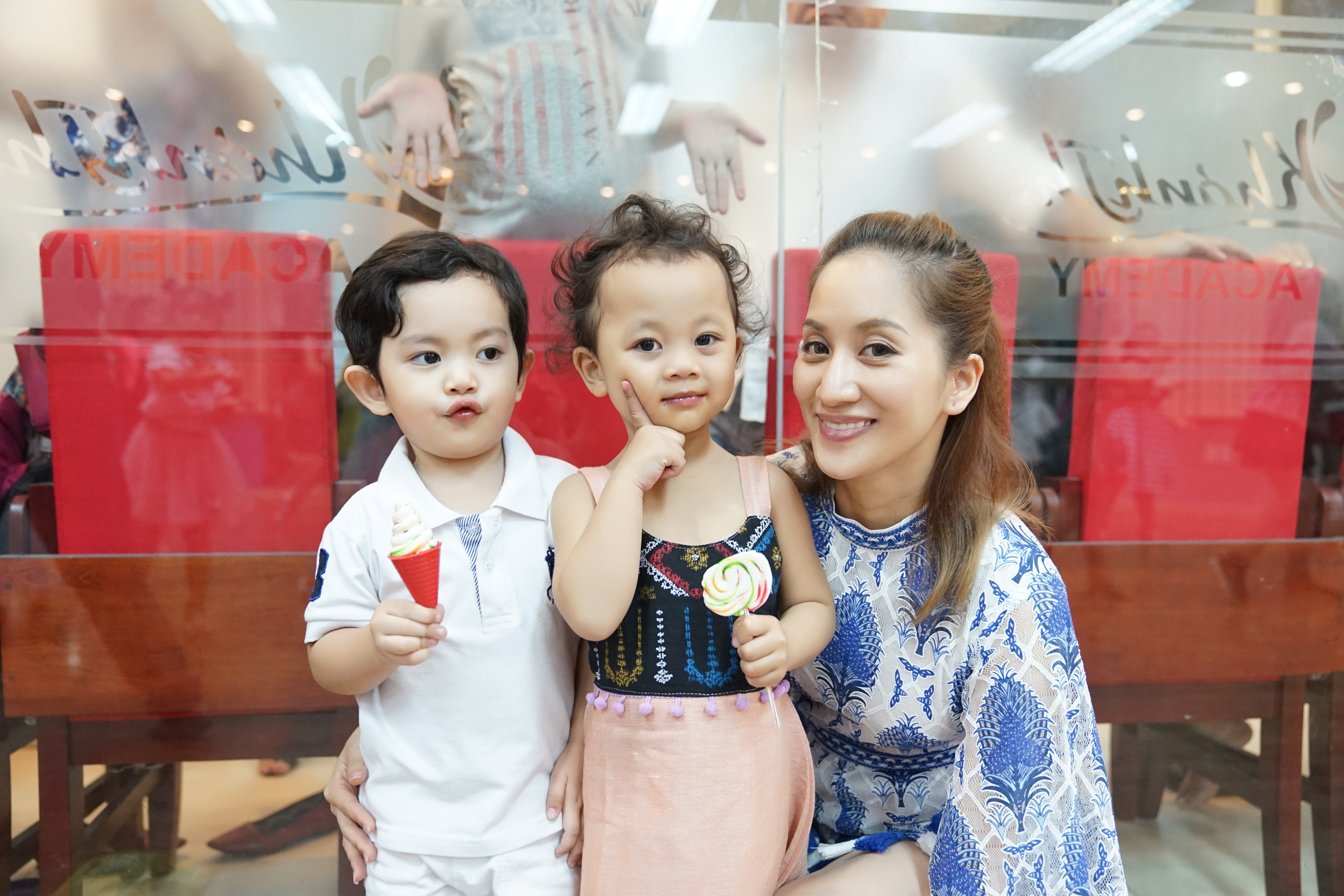 Trong đó, con trai Khánh Thi bất ngờ có hành động hôn bé gái kế bên khiến Khánh Thi “mắt chữ A mồm chữ O” khi nhìn thấy con “mê gái” như vậy.