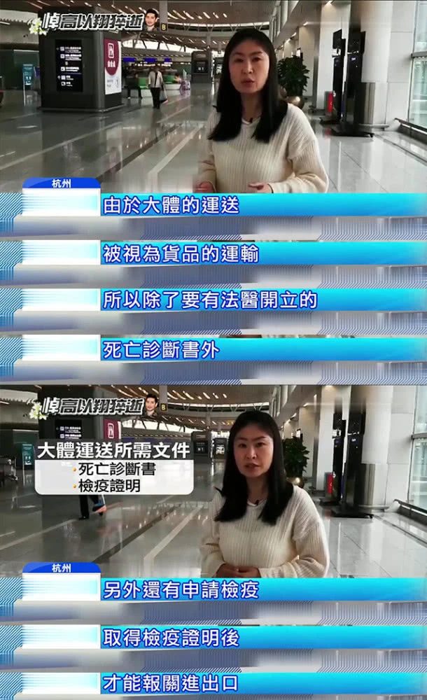 Muốn di thể được xem là “hàng hóa” để vận chuyển cần phải có giấy chứng tử của bệnh viện, còn phải xin kiểm dịch và được chứng nhận mới có thể đăng ký xuất nhập cửa khẩu. Có tin di thể Cao Dĩ Tường được đặt trong quan tài pha lê, nếu như muốn đưa bằng chuyên cơ chi phí khoảng 2 triệu tiền Đài Loan (khoảng 460 ngàn NDT ~ 1,5 tỷ đồng).