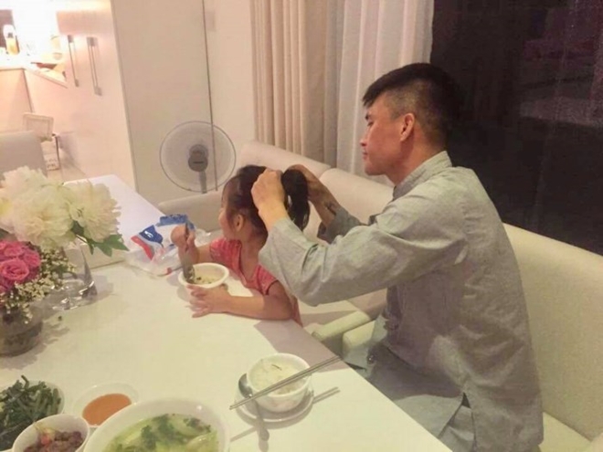 Dù có là người hùng sân cỏ cũng không hạnh phúc bằng việc buộc tóc cho con gái nhé!