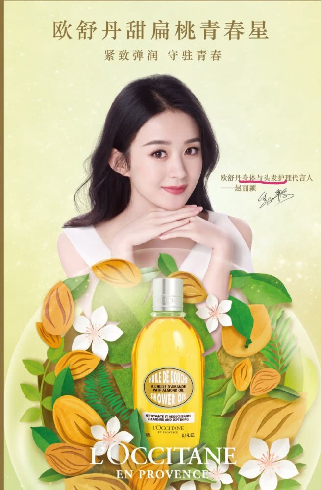Ngày 30 tháng 3, Triệu Lệ Dĩnh đã nhận được đại ngôn mới nhất, chính thức tuyên truyền trở thành người đại diện sản phẩm hai tuyến - bảo vệ tóc và chăm sóc sức khỏe của dòng L'Occitane en Provence. Nữ diễn viên có thể trở thành đại diện hai dòng sản phẩm đủ để chứng minh L'Occitane en Provence dành nhiều sự xem trọng cho Triệu Lệ Dĩnh.