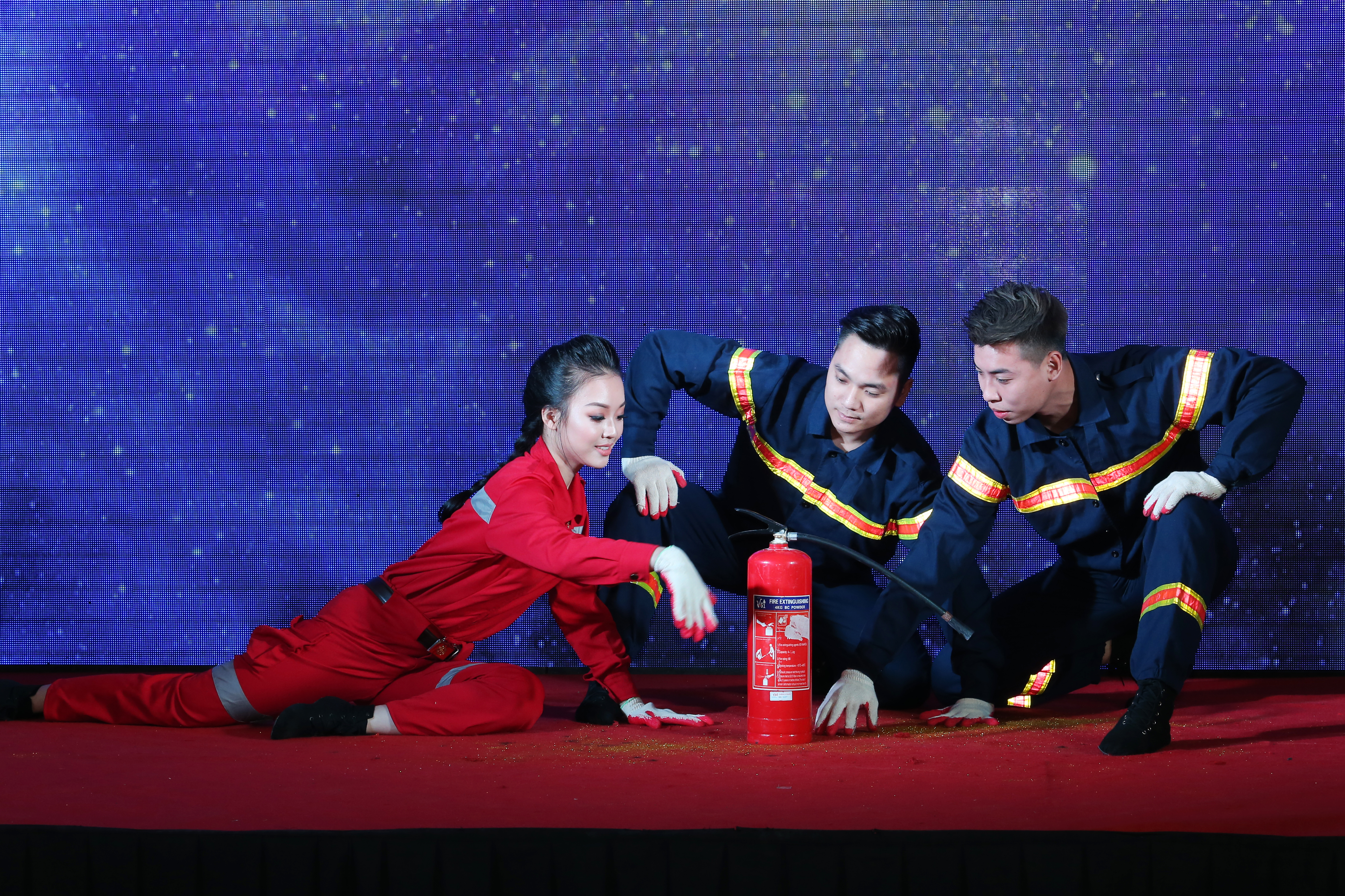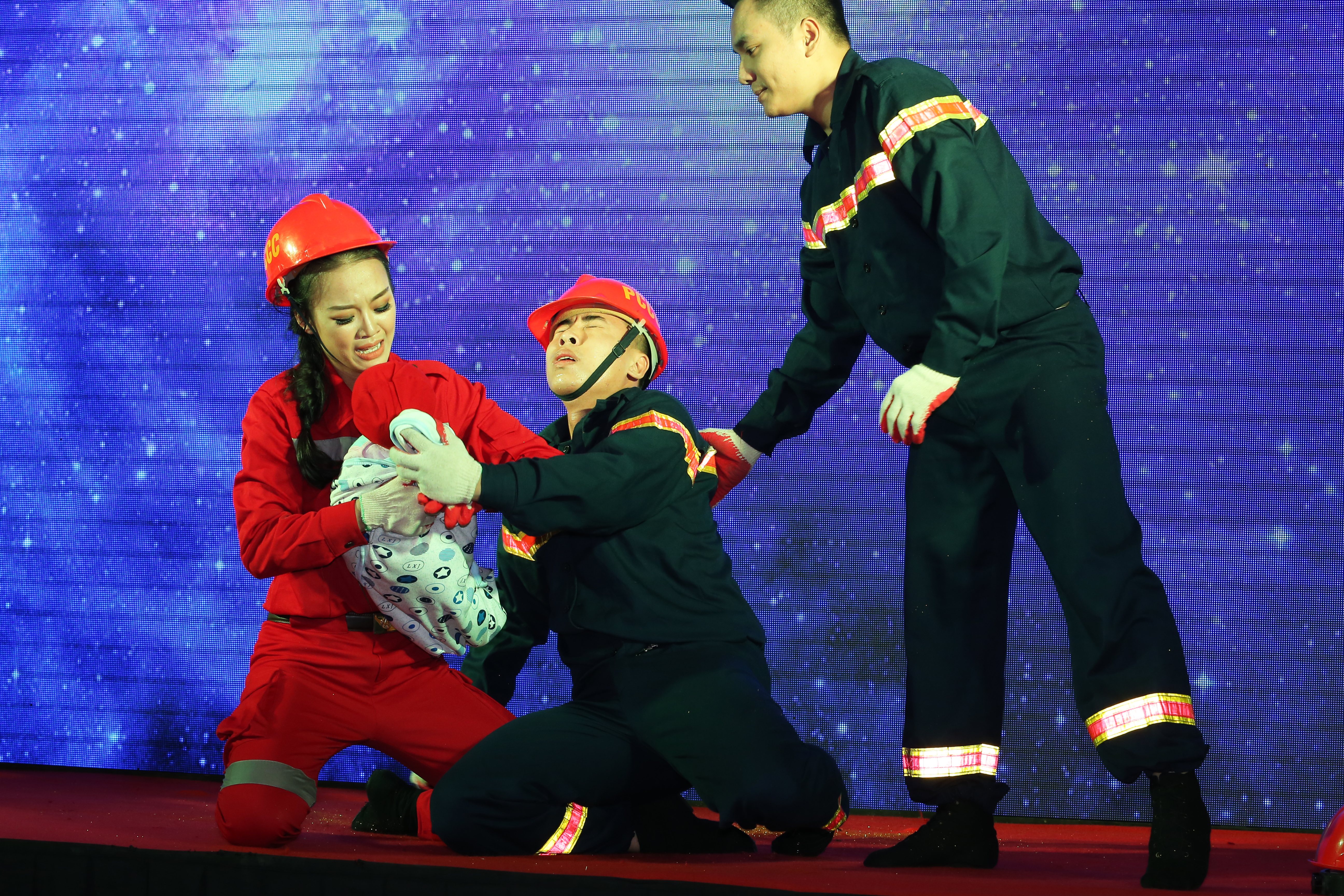 Cùng nhìn lại những hình ảnh trong tiết mục Vượt qua giặc lửa của Hải Thu nhé: