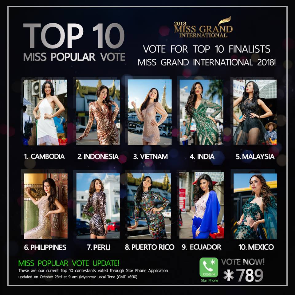 Sau đêm thi Bán kết, Hoa hậu Hòa bình Quốc tế - Miss Grand International 2018 tiếp tục cập nhật kết quả bình chọn giải Miss Popular Vote. Với quyền lợi dành cho thí sinh chiến thắng là sẽ bước thẳng vào Top 10 trong đêm chung kết mà không cần bận tâm số điểm của ban giám khảo, số vote ở giai đoạn nước rút đã có hàng loạt màn “đổi ngôi” ngoạn mục.