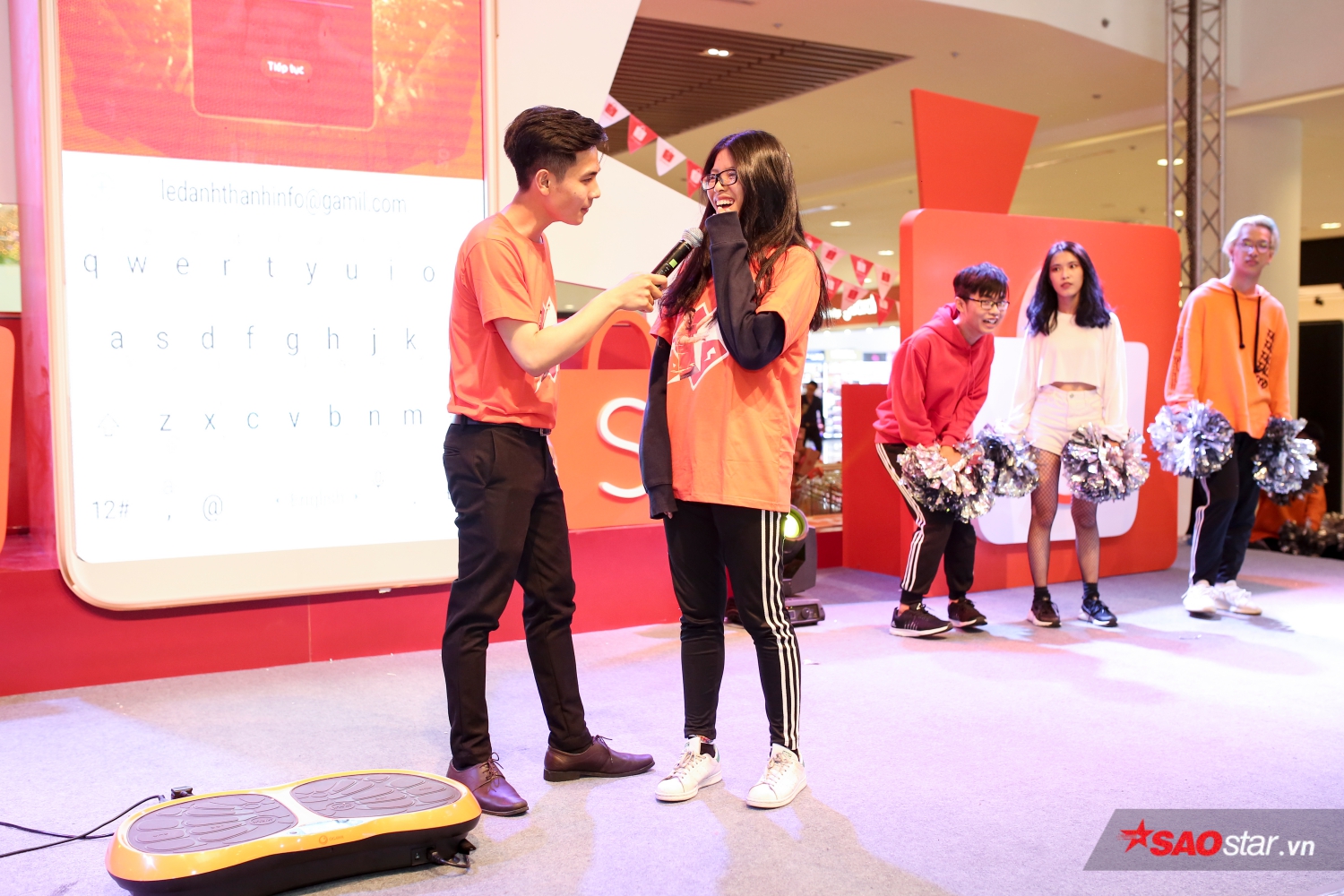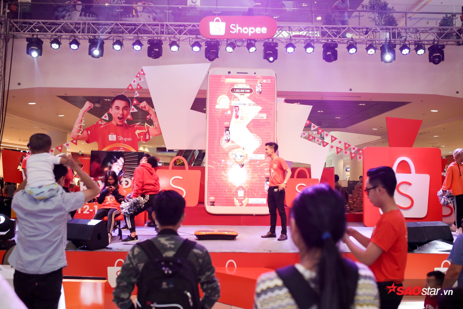 Lực lượng tình nguyện viên được bố trí khắp trung tâm thương mại Vivo City để tư vấn, hướng dẫn, giúp khán giả hiểu thêm về ứng dụng tiện ích Shopee.