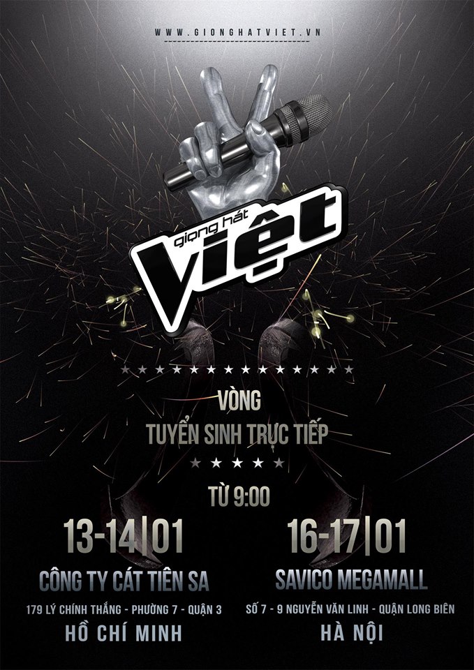Vòng TUYỂN SINH của GIỌNG HÁT VIỆT MÙA TIẾP THEO đã khởi động!Ngay từ lúc này, hãy cùng chúng tôi viết tiếp lên chặng hành trình tìm kiếm Quán quân của chương trình âm nhạc uy tín và được trông đợi nhất!ĐỐI TƯỢNG THAM DỰ: - Là công dân Việt Nam hoặc người có quốc tịch nước ngoài đang sinh sống hoặc/và học tập, làm việc tại Việt Nam- Từ 16 tuổi trở lên (tính đến tháng 4/2019)- Không có tiền án, tiền sự, không trong thời gian thi hành án hoặc chịu sự điều tra của cơ quan hành pháp- Không chịu sự quản lý độc quyền của các tổ chức, đơn vị trong và ngoài nước. HƯỚNG DẪN ĐĂNG KÝ TUYỂN SINH:Bước 1: Truy cập website www.gionghatviet.vn, tìm và nhấn nút ĐĂNG KÝBước 2: Điền đầy đủ thông tin vào BẢN ĐĂNG KÝ. Lưu ý chọn đúng cách thức tham gia tuyển sinh của bạn (Trực tiếp hoặc Online). Trường hợp đăng ký Tuyển sinh Trực tiếp, chọn địa điểm mà bạn sẽ tới (Hà Nội hoặc TP.HCM)Bước 3: Nhấn nút GỬI để hoàn thành.Trước 02 ngày diễn ra buổi tuyển sinh trực tiếp (tính theo lịch của các địa điểm tuyển sinh), bạn có thể quay lại website www.gionghatviet.vn, nhập số điện thoại hoặc CMND của bạn để nhận Số báo danh. Chúng tôi cũng sẽ gửi một email tự động thông báo Số báo danh về hộp thư mà bạn đã đăng ký.TẠI BUỔI TUYỂN SINH:- Đem theo CMND (hoặc các giấy tờ thay thế) để nhận SBD trực tiếp tại bàn in tờ khai đã đăng ký của bạn, được cung cấp bởi ekip Tuyển sinh.- Bạn có thể đăng ký tham dự bằng cách hình thức đơn ca, song ca hoặc nhóm ca- Chờ tới lượt thi của bạn tại các phòng Audition 1 và Audition 2.