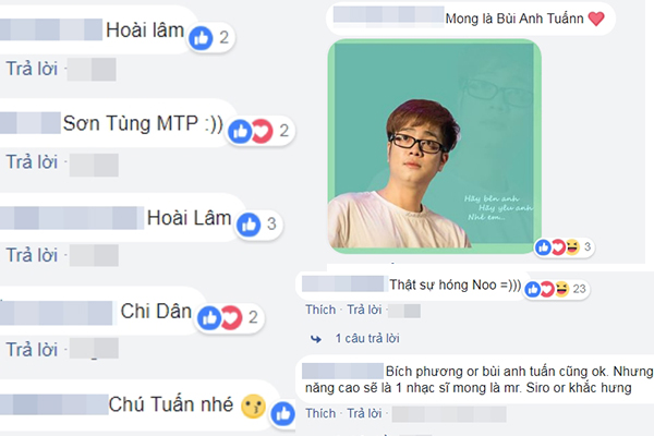 Không chỉ tích cực “ship” cặp đôi Sơn Tường, các fan còn đang ra sức tìm kiếm người đồng hành cho Bảo Anh tại The Voice Kids. Hàng loạt cái tên phù hợp được đưa ra như Sơn Tùng, Bùi Anh Tuấn, Hoài Lâm, ERIK, Ông Cao Thắng, nhạc sĩ Mr Siro đều được cư dân mạng gọi tên. Nhiều fan còn nghĩ ra “option” cặp HLV nữ đặc biệt để Bảo Anh kết hợp cùng Hòa Minzy, Bích Phương.