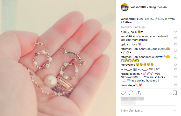 Thì mới đây, Goo Hye Sun bất ngờ đăng tải trên trang cá nhân hình ảnh của chiếc nhẫn cưới sau 2 năm do ông xã Ahn Jae Hyun tặng cho cô làm quà đính hôn. Điều ngạc nhiên hơn, chiếc nhẫn cưới ấn tượng này được chính Ahn Jae Hyun thiết kế.