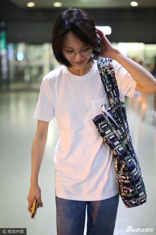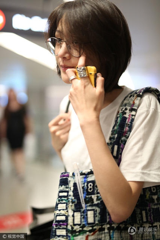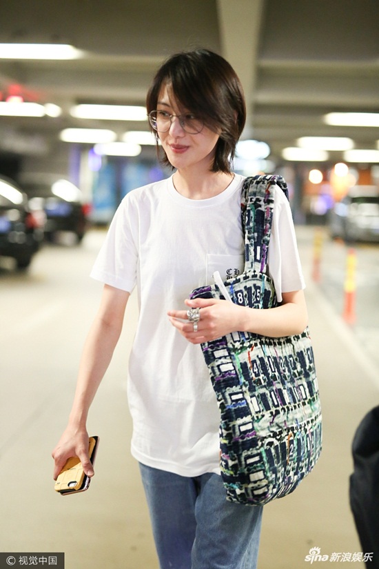 Mới đây, Trịnh Sảng xuất hiện ở sân bay Thượng Hải. Cô nàng khiến nhiều người hâm mộ ngạc nhiên vì phong cách ăn mặc nam tính. Mái tóc cắt ngắn, áo phông trắng, quần jeans thụng, đặc biệt là trang sức to bản, hầm hố.