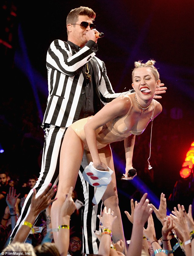 Lần xuất hiện khủng hoảng nhất của cô là sân khấu MTV khiến cả thế giới phải sửng sốt khi Miley thực hiện những điệu nhảy gợi cảm và loạt hành động không đẹp cũng như phần quá lố trước ống kính với nam ca sĩ đáng tuổi cha mình - Robin Thicke.