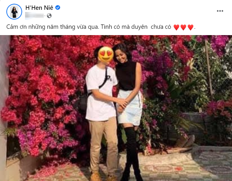 H'Hen Niê và bạn trai cũ đã bắt đầu hẹn hò vào năm 2018, thế nhưng đến tháng 7/2019 nàng Hậu mới chính thức công khai "hoa đã có chủ". Tuy nhiên vào khoảng 2 tháng trước, H'Hen Niê lại bất ngờ có động thái ngầm xác nhận đã chia tay khi đăng ảnh với dòng trạng thái "Gái độc thân" khiến dân tình được phen xôn xao. Sau khoảng thời gian để netizen "đoán già đoán non", bài viết trên của người đẹp 9x đã phần nào xác nhận về mối quan hệ đã tan vỡ của cả hai ở thời điểm hiện tại.