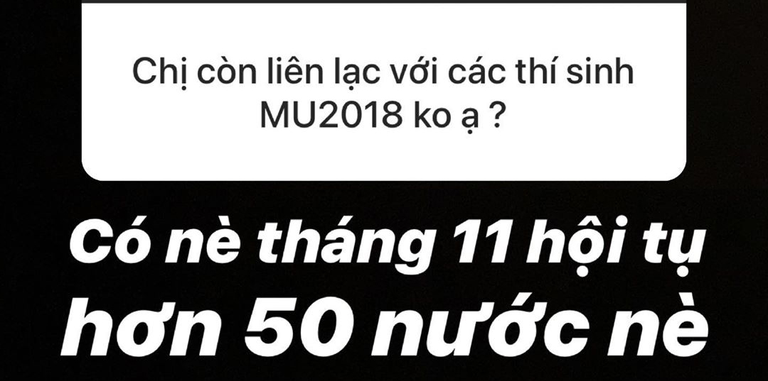 Mới đây, đương kim Hoa hậu Hoàn vũ Việt Nam H'Hen Niê khiến người hâm mộ bất ngờ và hào hứng khi chia sẻ hàng loạt dự định mới. Người đẹp Ê Đê sẽ có cuộc hội ngộ với 50 thí sinh của cuộc thi Miss Universe 2018.