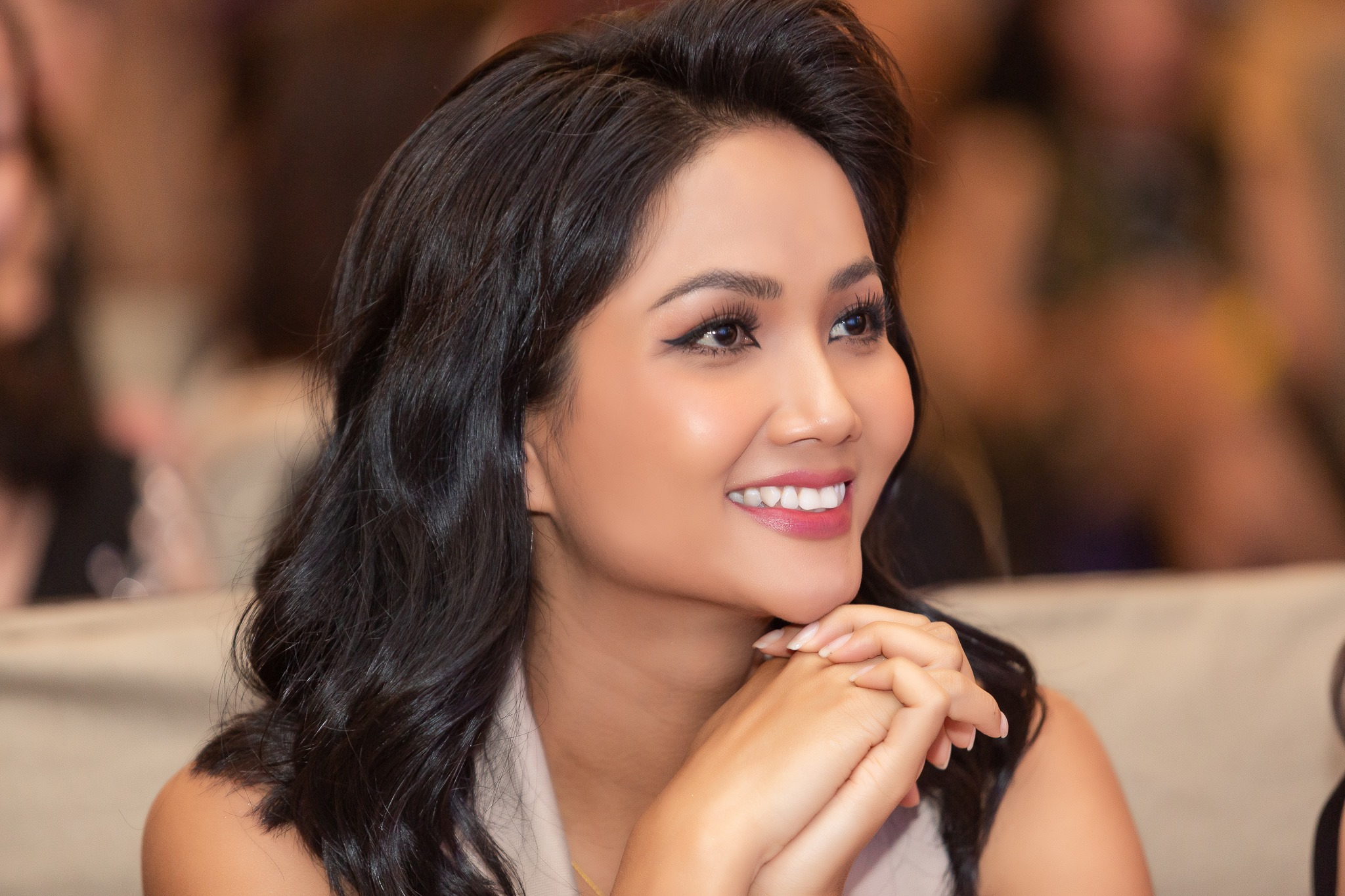 Diện 1 thiết kế thanh lịch nhưng không kém phần sang trọng, H’Hen Niê gây thiện cảm với người đối diện bởi phong thái tự tin cùng nụ cười duyên của mình. Nhiều lời khen đã dành tới style mới của Hoa hậu.