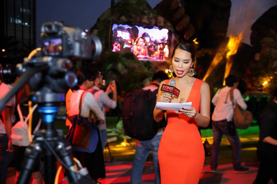 Hà Anh trên sân khấu ra mắt bộ phim Kong: Skull Island vào tối 9/3 ở TP HCM.