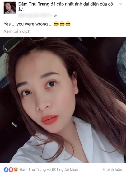 Không lâu sau, Đàm Thu Trang đăng ảnh ẩn ý: “Yes, you were wrong” (tạm dịch: Anh/ bạn sai rồi).