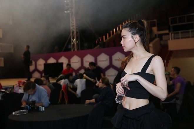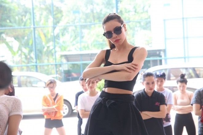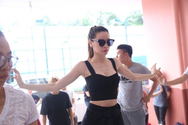 Suốt thời gian tập luyện, người đẹp tập trung cao độ dù tiết trời bên ngoài nóng bức.