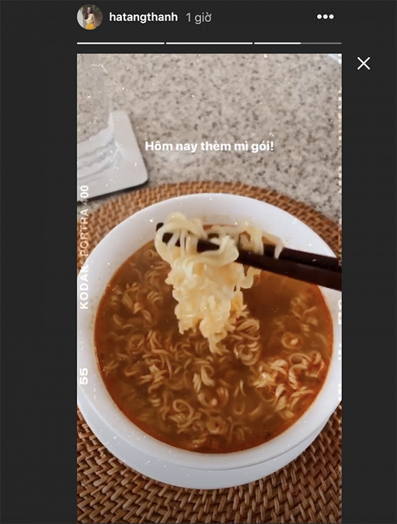 Nữ diễn viên viết: “Hôm nay thèm mỳ gói”. Qua hình ảnh được Tăng Thanh Hà chia sẻ, nữ diễn viên còn không thêm rau hay hải sản mà ăn đơn thuần nhưng vẫn ngon lành.